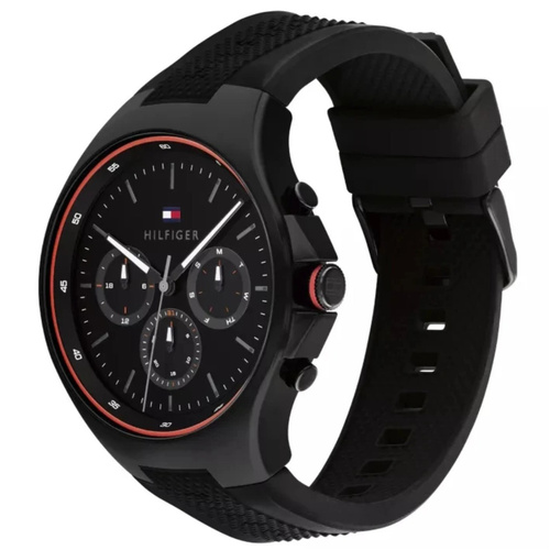 ساعت مچی مردانه تامی هیلفیگر مدل 1792056 با طراحی تمام مشکی جذاب، حاشیه نارنجی خاص، موتور کوارتز چندکاره دقیق و مقاومت مناسب 5ATM، یکی از متفاوتترین و شیکترین گزینهها در دسته ساعتهای اسپرت متوسط قیمت تامی هیلفیگر محسوب میشود.