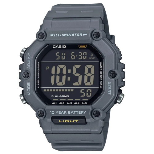 طراحی ساعت کاسیو AE-1600H-8BV بر پایه استحکام و خوانایی بالا بنا شده است. قاب بزرگ octagonal شکل با رنگ خاکستری رزین، حس محکمی میدهد و صفحه دیجیتال بزرگ با ارقام inverted، زمان و اطلاعات را حتی از فاصله دور به راحتی نشان میدهد. بنابراین، دکمه جلویی بزرگ برای فعال کردن نور LED (Illuminator) طراحی شده که استفاده در تاریکی را بسیار آسان میکند.